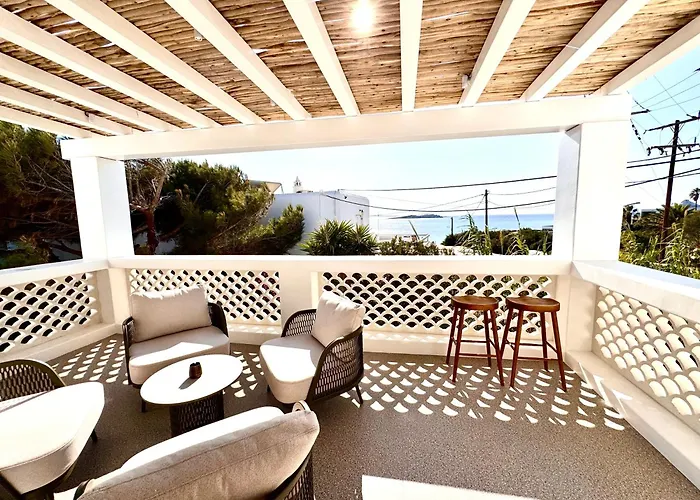 La villa Callisso Mykonos Megali Ammos está situada a tan solo 6 minutos a pie de la Pequeña Venecia e invita a los huéspedes a disfrutar de terraza y patio. Situada a 550 metros del Space Club, esta villa cuenta con una terraza con vistas al mar.